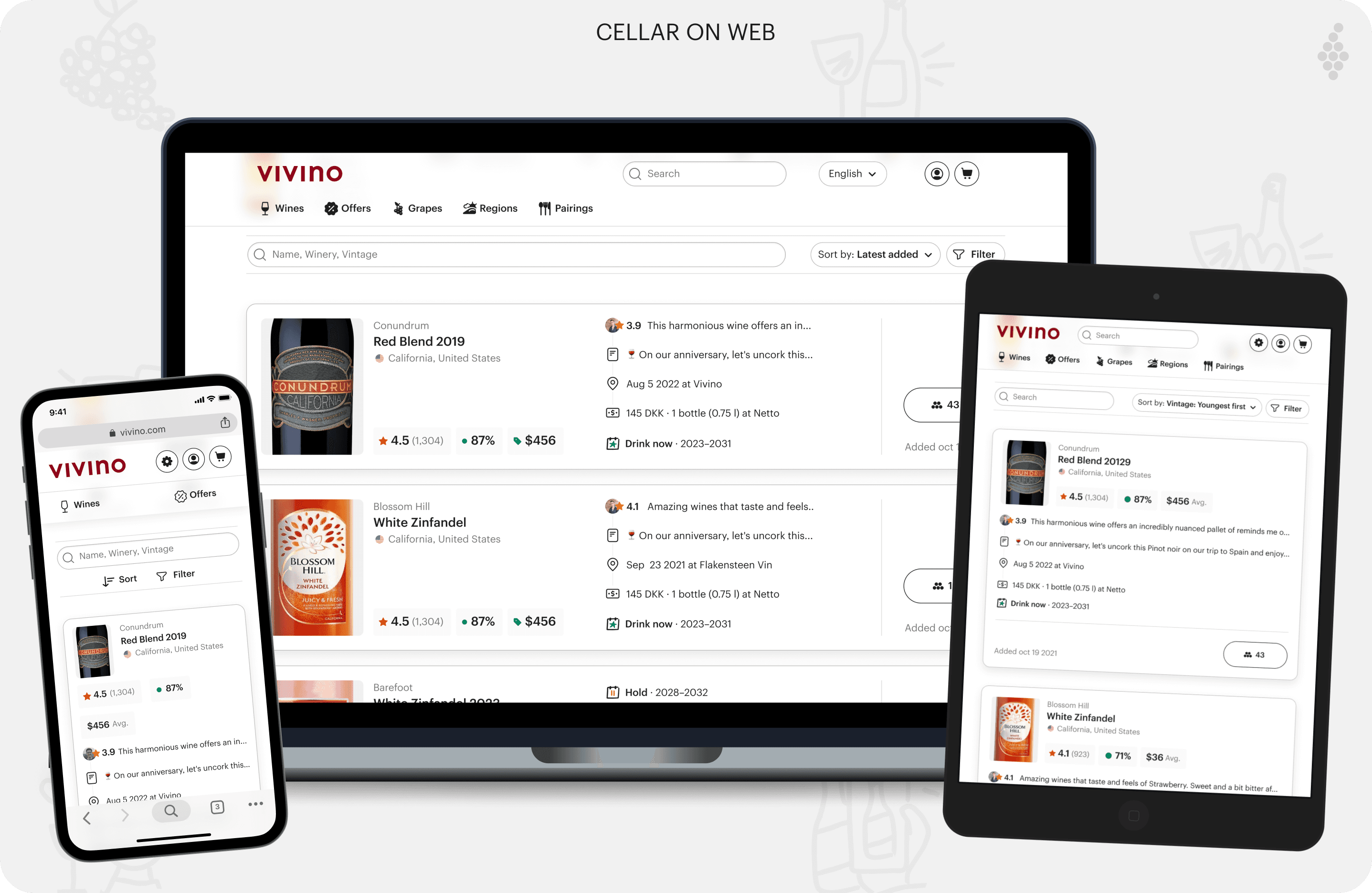 Vivino has been, and still is, an app-first service, but the web platform remains popular among the general user base. Because of this many users requested the ability to manage their wine collections on more devices and larger screens. This demand led Vivino to initiate Cellar on web, to which I rooted my design on two main goals: