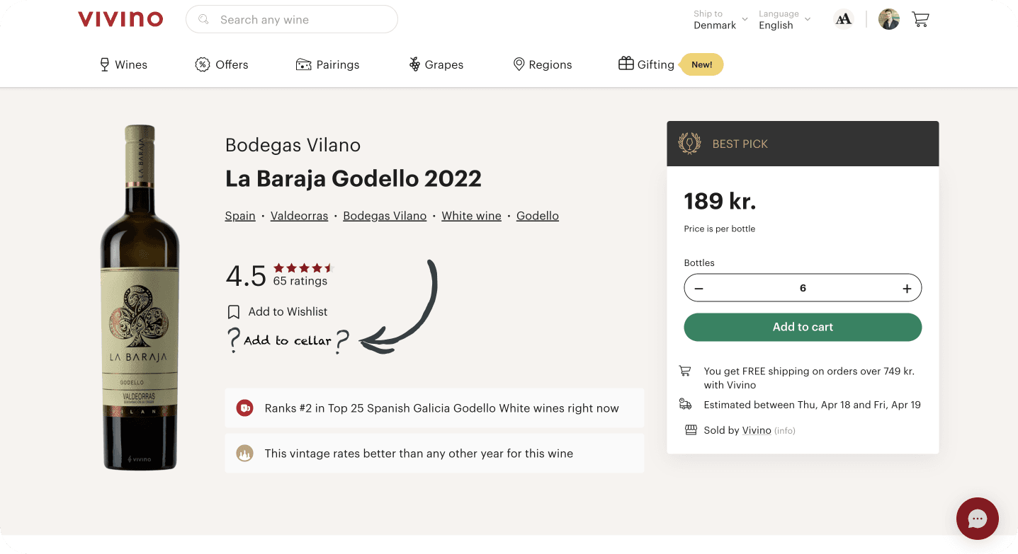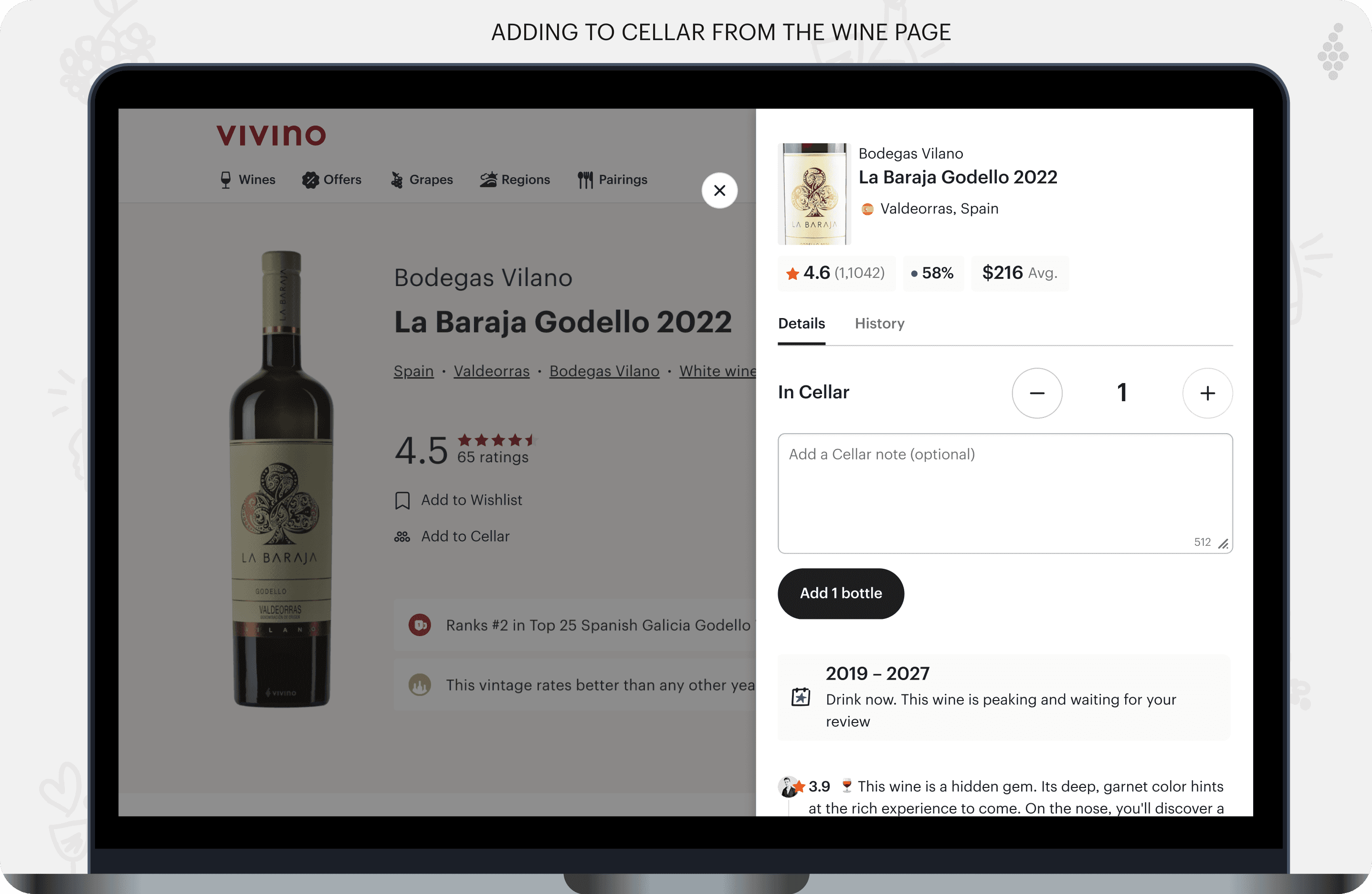 Illustration of the missing link, the option to add to Cellar from wine PDP